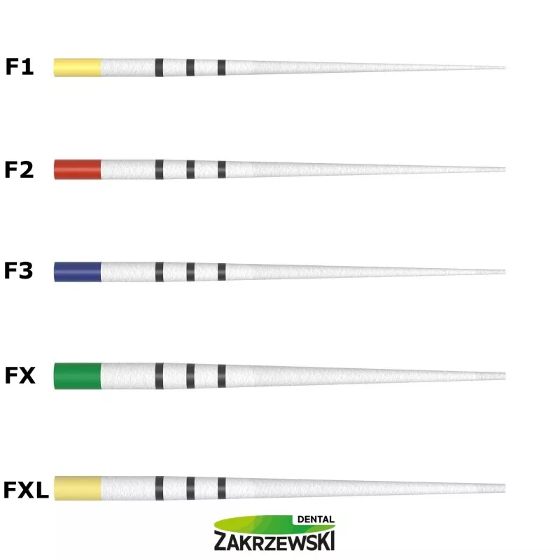 Występują w pięciu rozmiarach pasujących do wszystkich rozmiarów kanałów przygotowanych przez narzędzia ProTaper Ultimate, aby zapewnić całkowite wysuszenie