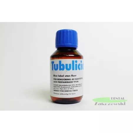 Tubulicid Blue służy do dezynfekcji i oczyszczania z warstwy mazistej ścian ubytku i powierzchni zęba po preparacji pod koronę. Usuwa pozostałości nie otwierająckanalików zębinowych. Stosowany również do przemywania ubytkówpo obnażeniu i zranieniu miazgi oraz podczas jej amputacji. Nie zawiera fluoru.