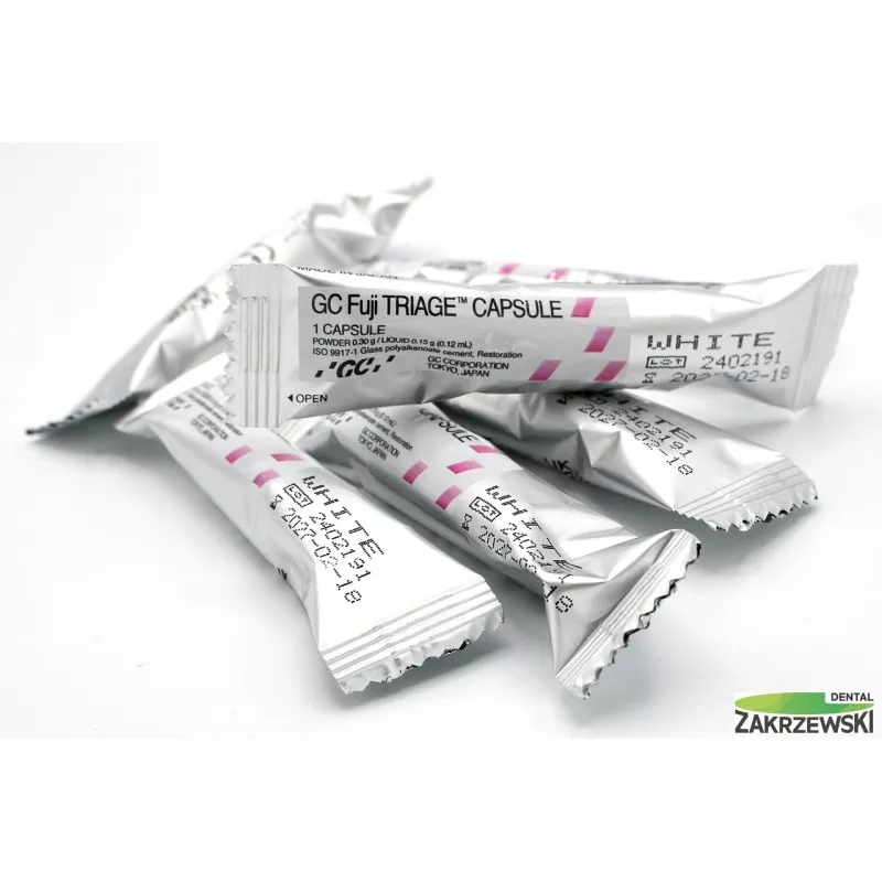 Opakowanie zawiera: Fuji Triage 50 kapsułek o zawartości 0,30 g proszku i 0,15 g (0,12 ml) płynu w wybranym kolorze.