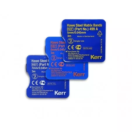 Pasek metalowy Kerr Hawe w rolce o długości 3m i w trzech różnych szerokościach do zastosowania przy odbudowach wszystkich typów w odcinku tylnym. Pasek umieszczony w wygodnym plastikowym opakowaniu
