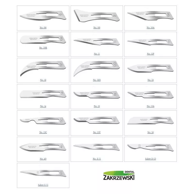 · Ostrza do skalpela nr: 6, 10, 10A, 11, 11P, 12, 13, 15, 15A, 15C pasują do uchwytu nr 3