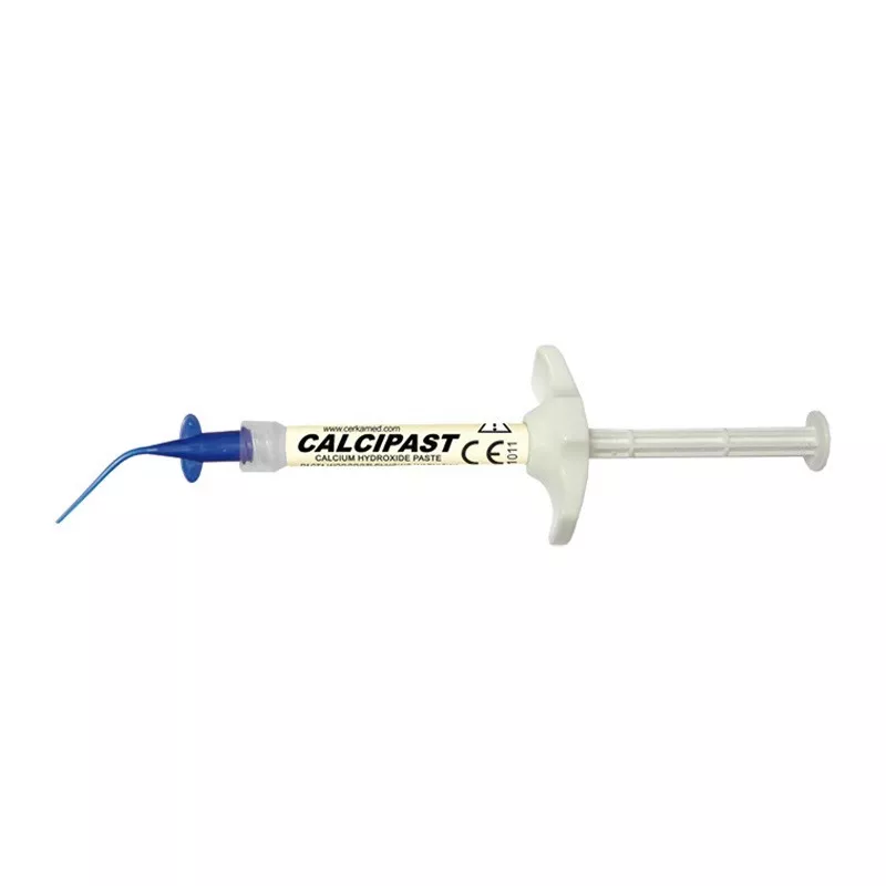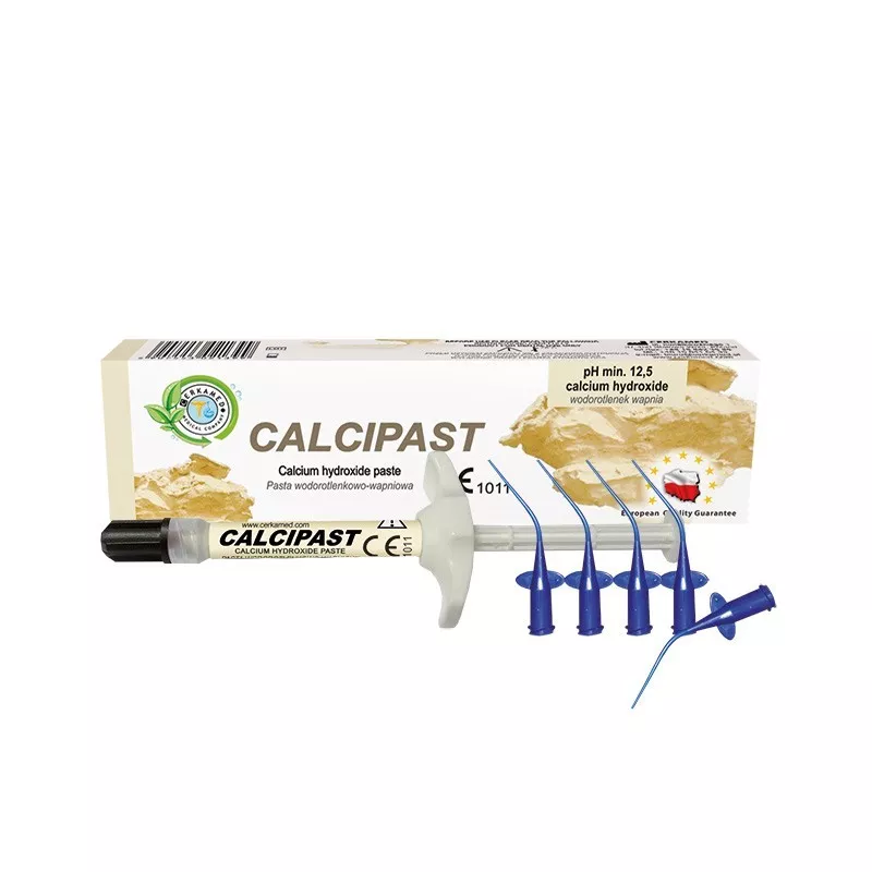 Calcipast 35% wodorotlenek wapnia-strzykawka to materiał w postaci pasty do tymczasowego wypełniania kanałów korzeniowych. Jego wskaźnik pH w przybliżeniu wynosi 12,5. Wykazuje kontrast na zdjęciu RTG. Stymuluje odbudowę uszkodzonych tkanek około wierzchołkowych.