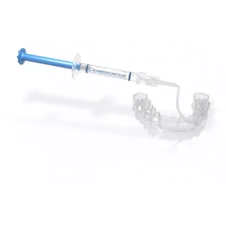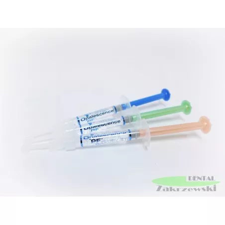 OPALESCENCE PF 16% to profesjonalny i bezpiecznym preparat do nakładkowego wybielania zębów. Jest gęstym, przeźroczystym żelem, łatwym w aplikacji w którego czynnikiem aktywnym jest nadtlenek karbamidu. Formuła preparatów OPALESCENCE PF zawiera dodatkowo azotan potasu i fluor dzięki, którym zwiększa komfort kuracji poprzez wyeliminowanie lub znaczne zmniejszenie nadwrażliwości w trakcie wybielania. Noszenie nakładek z preparatem jest zalecane w ciągu dnia przez 4- 6 godzin. Kuracja preparatami OPALESCENCE PF jest bezpieczna dla pacjenta.