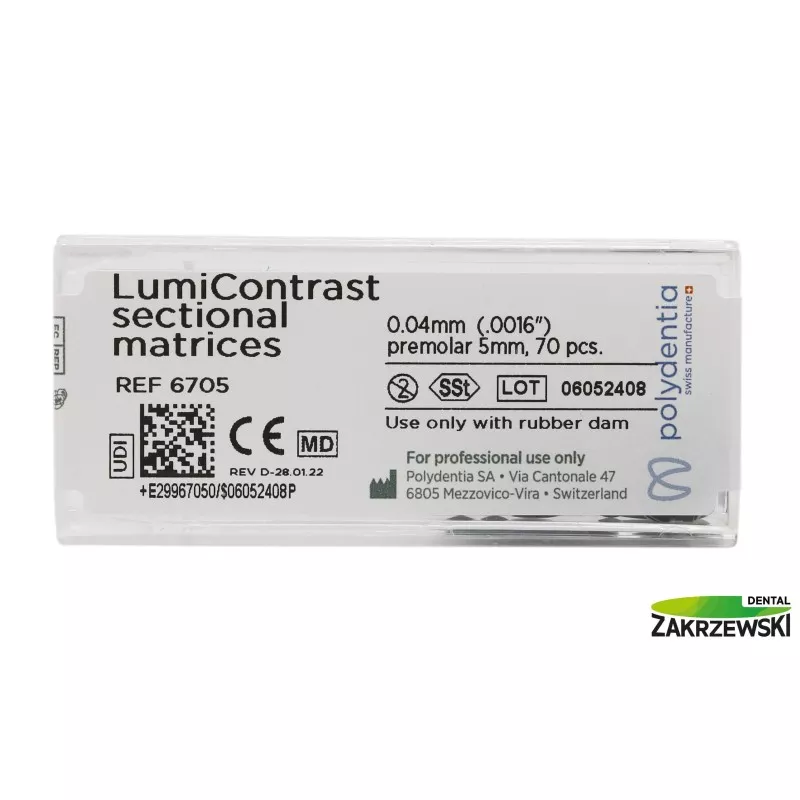 6705 Quickmat LumiContrast matryce częściowe do zębów przedtrzonowych gr. 0,04mm, wys. 5 mm, op. 70 szt.
