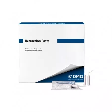 Retraction Paste jest produktem umożliwiającym pobranie precyzyjnego wycisku protetycznego, bez konieczności jego korekty. Tymczasowo poszerza bruzdę dziąsłową, łatwo i skutecznie odsłaniając przygotowane brzegi. Dzięki swojej optymalnej konsystencji jest łatwy w aplikacji, nie spływa, dzięki czemu wycisk jest precyzyjny. Pasta zawiera środek obkurczający, który eliminuje ewentualny obrzęk dziąsła.