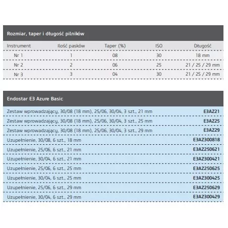 Pilniki E3 Azure Basic Ass 3 szt. Endostar Poldent