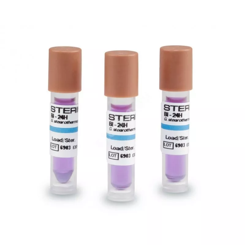 W ampułkach testu biologicznego na krążku umieszczone są szczepy bakterii Geobacillus stearothermopilus oraz zamknięta porcja pożywki. Ampułka, w opakowaniu papierowo-foliowym, umieszczana jest między sterylizowanymi pakietami w komorze autoklawu. Po zakończeniu cyklu sterylizacji i dodaniu pożywki, bakterie poddaje się 24-godzinnej próbie inkubacji w temperaturze 55-60°C.